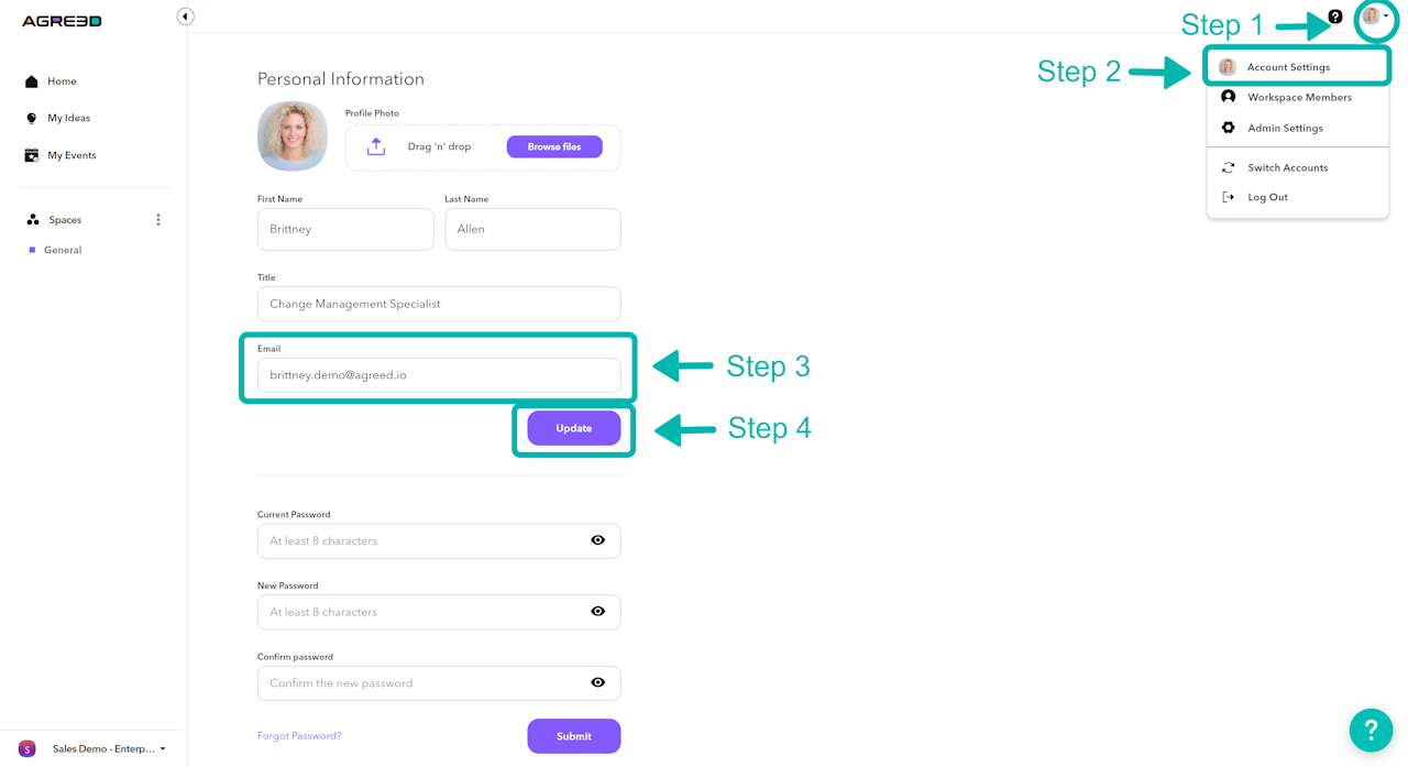 Step 4: Select the Update button to save your new email.