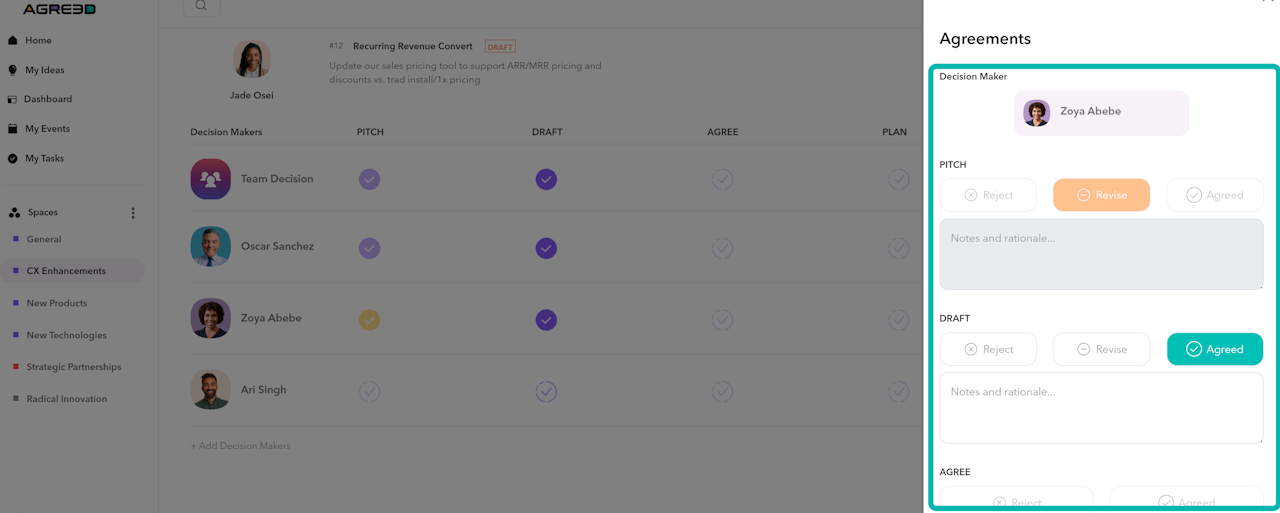 Select Agreed if you approve the Idea for implementation without further revision.