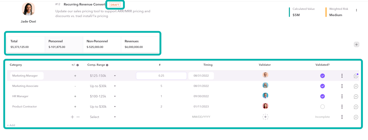Step 1: Select the Value and Risk tabs to review the final business case.